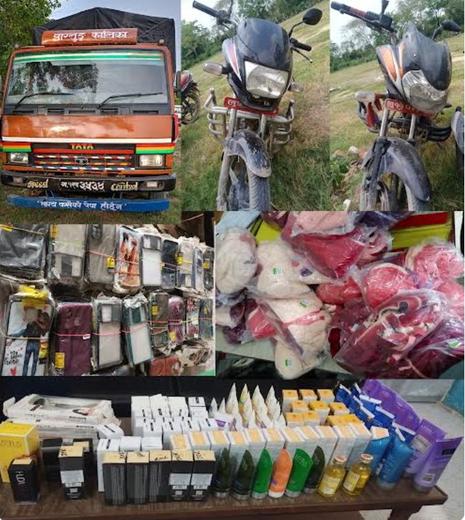 अवैध सामान बोक्ने ट्रक र मोटरसाइकल प्रहरीको नियन्त्रणमा